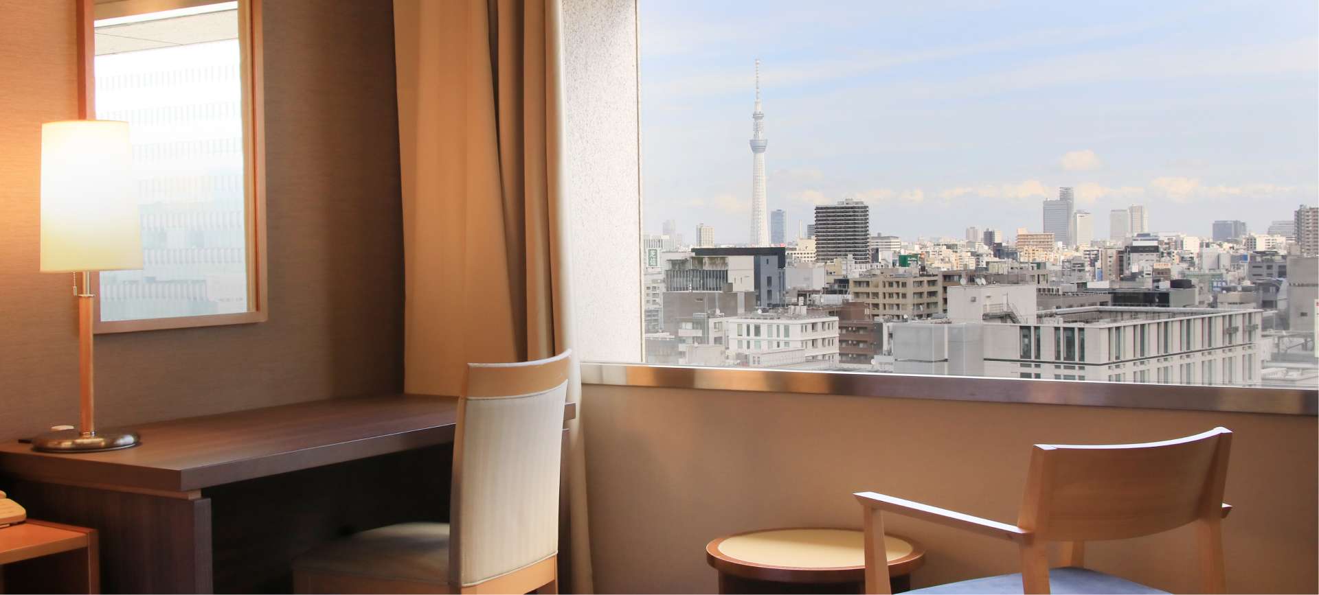 皇居の美しい景色や、東京の夜景を一望できる13階以上の高層階に配置された客室は、全161室。シングルからスイートルームまで、ゆとりの空間に落ち着きあるインテリアを配し、 ゆったりとしたひとときをお過ごしいただけます。ビジネスや、プライベートのさまざまなシーンでお使いいただけるバラエティ豊かでお得なプランの数々もご用意いたしております。