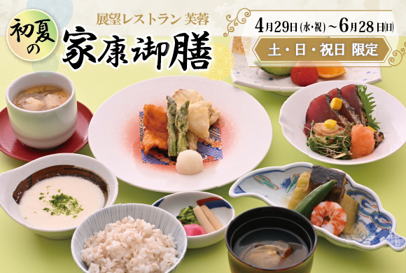 そんな家康をイメージし、江戸っ子の好んだ「初鰹」や「浅利」など旬の食材を御膳にまとめました。新緑の皇居をご覧になりながらゆっくりとお食事をお楽しみください。