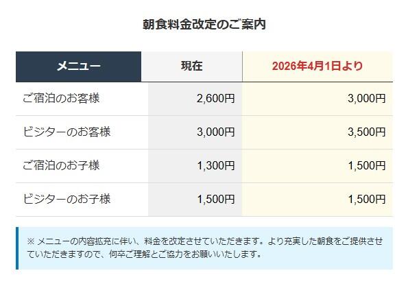 【朝食】朝食料金改定のご案内(2026.4.1~)